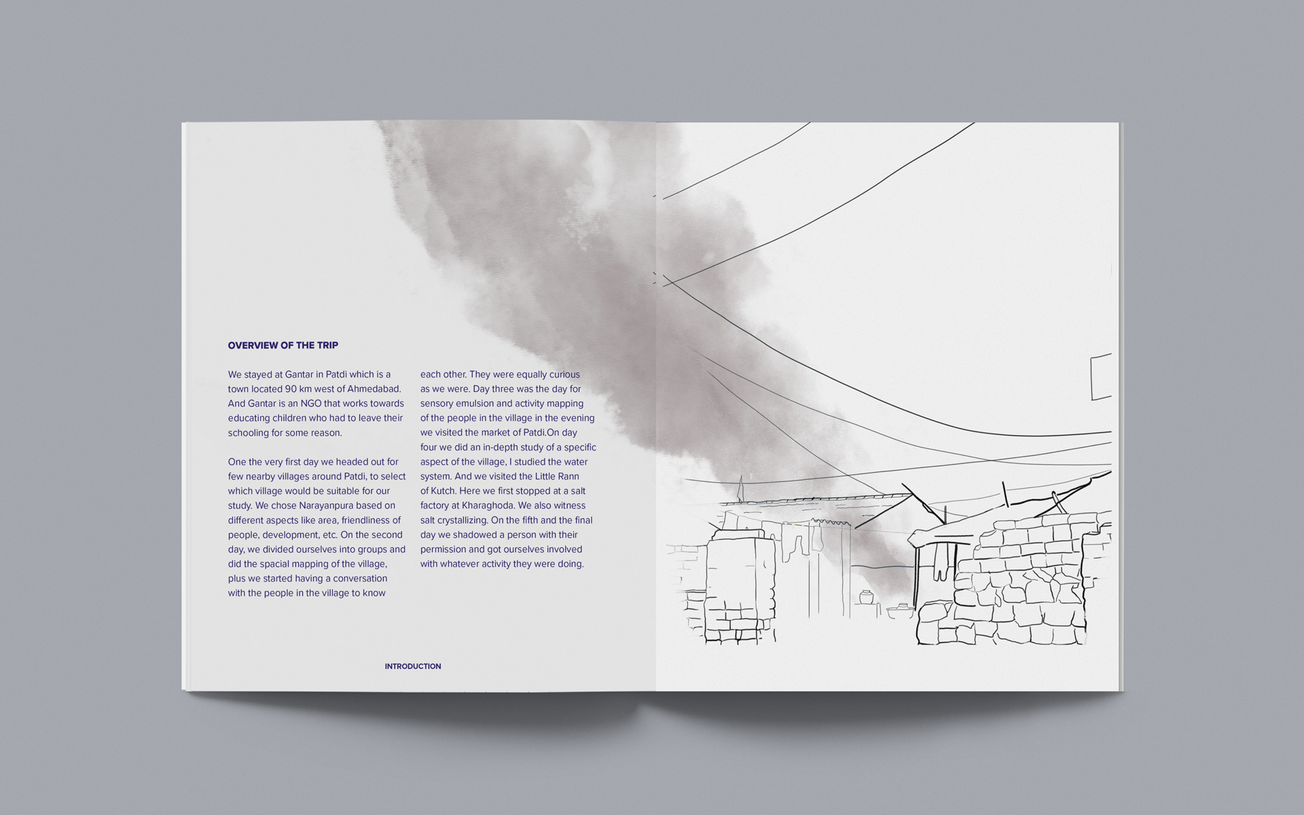 This book is a collection of my thoughts and experiences during the course called 'Learning from the Fields'. This publication is an outcome of the course ‘Learning from the Field’ which was intended to understand the local physical environment, gain multisensory experience, social and cultural perspective of people and place from Indian society and culture. This booklet documents my experiences during the week-long stay in Naranpura, a small village in Gujarat, India.